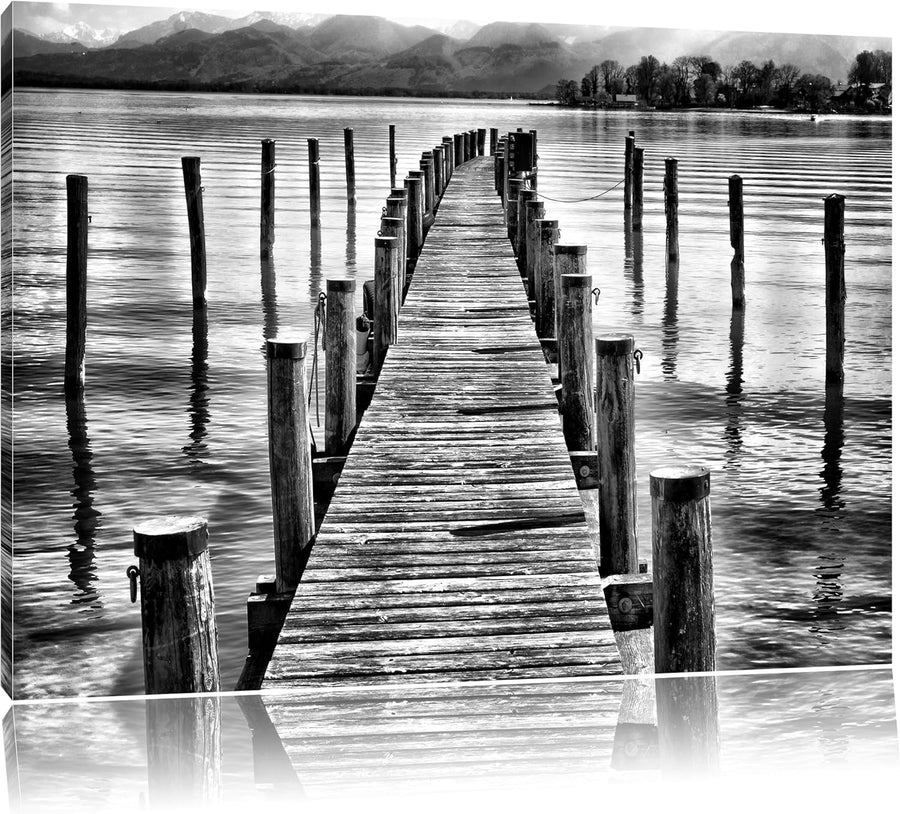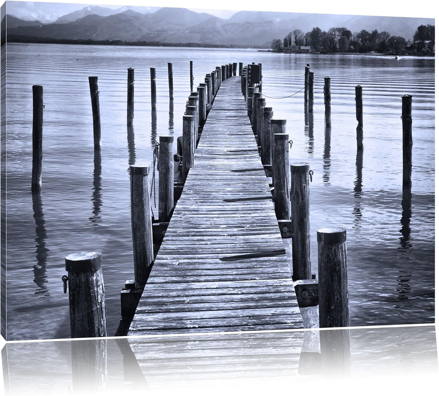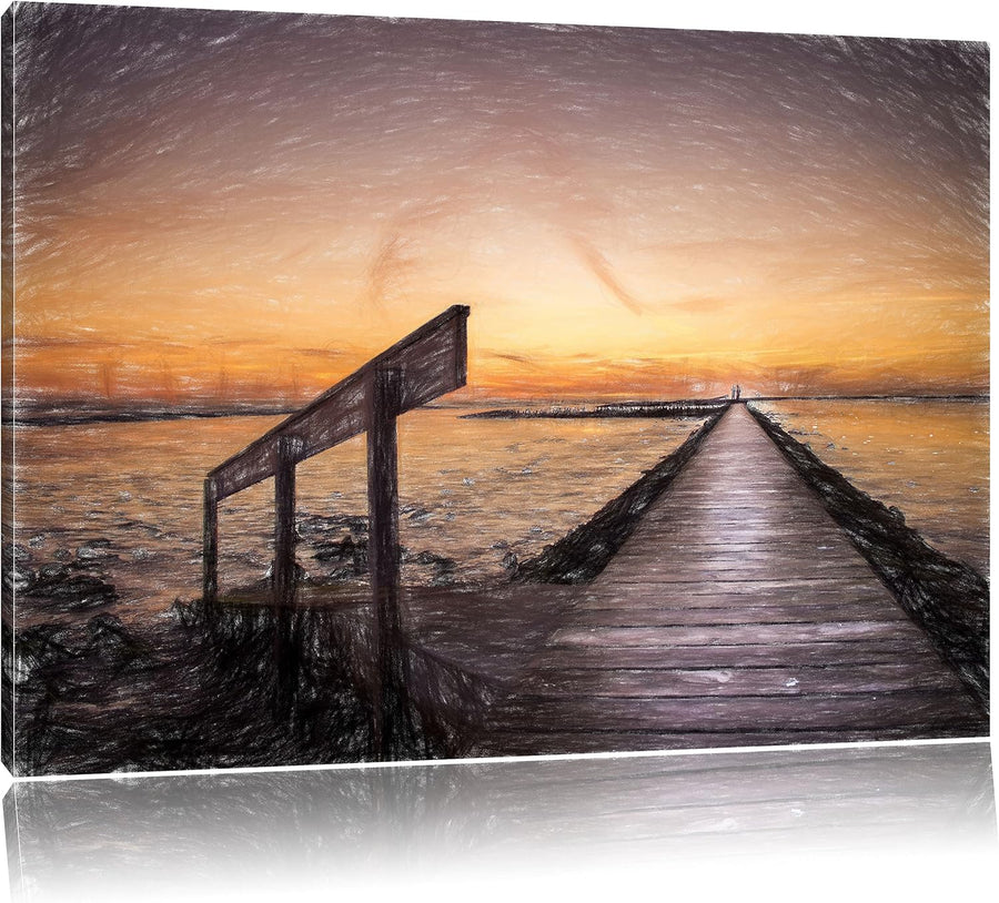 Pixxprint Langer Holzsteg ins Meer als Leinwandbild/Grösse: 100x70 cm/Wandbild/Kunstdruck/fertig bes