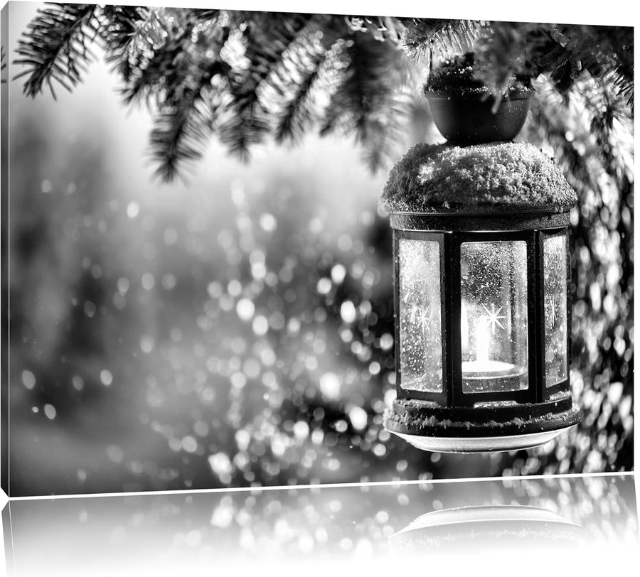 Pixxprint Laterne im Winter als Leinwandbild/Grösse: 100x70 / Wandbild/Kunstdruck/fertig bespannt, 1