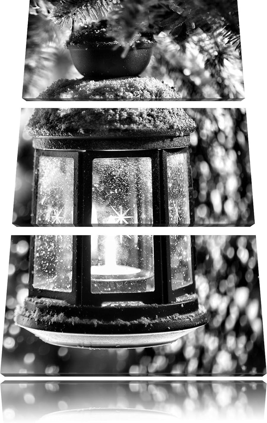 Pixxprint Laterne im Winter als Leinwandbild | Grösse: 3 Teilig (120x80) | Wandbild| Kunstdruck | fe