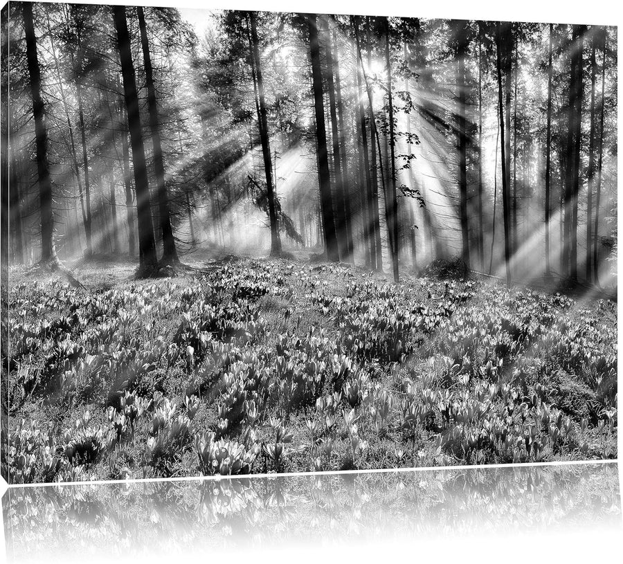 Pixxprint Lavendel im Wald / 100x70cm Leinwandbild bespannt auf Holzrahmen/Wandbild Kunstdruck Dekor