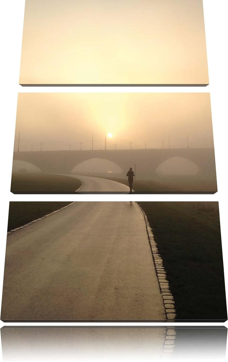 Pixxprint Läufer im Morgengrauen als Leinwandbild/Grösse: 3 Teilig (120x80) / Wandbild/Kunstdruck/fe