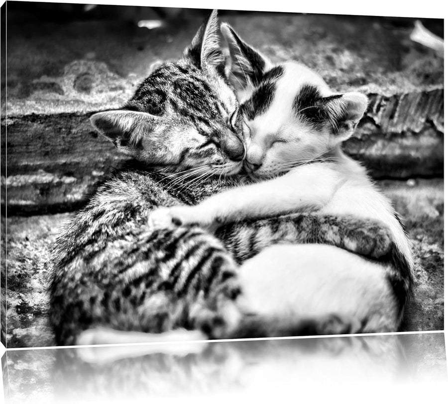Pixxprint Liebende Kätzchen als Leinwandbild/Grösse: 100x70 cm/Wandbild/Kunstdruck/fertig bespannt,