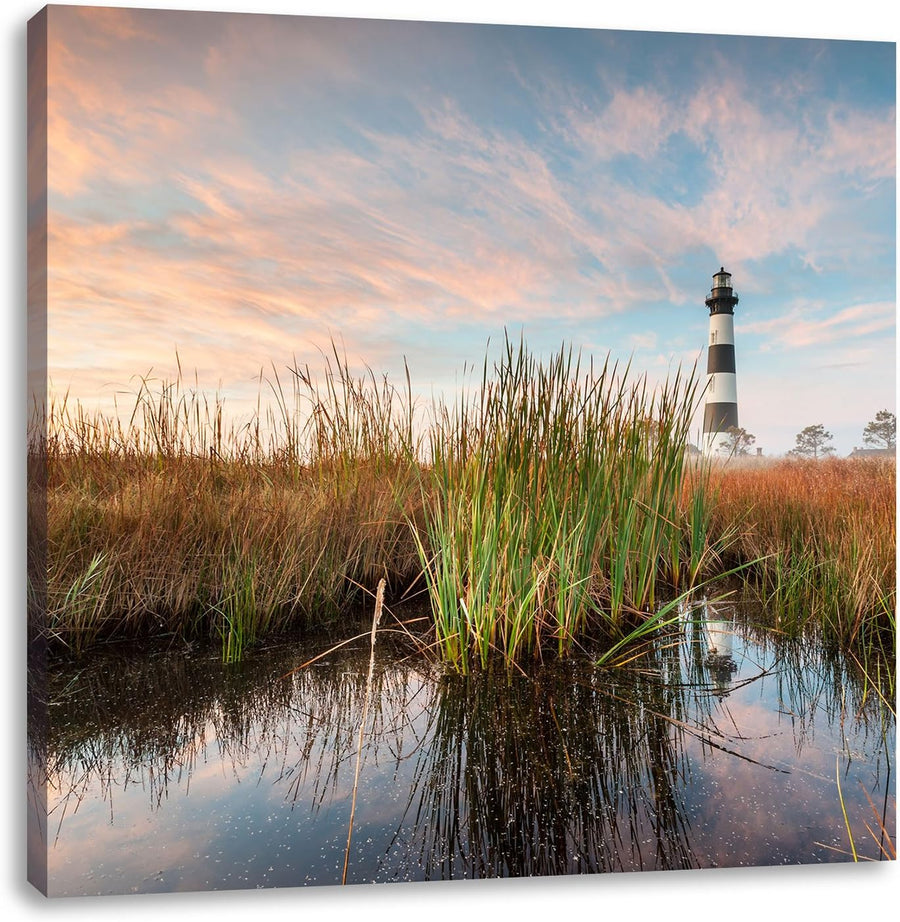 Pixxprint Leuchtturm im Sonnenuntergang als Leinwandbild/Grösse: 70x70 cm/Wandbild/Kunstdruck/fertig