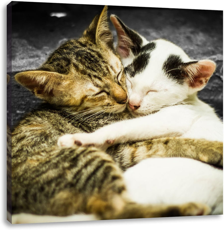 Pixxprint Liebende Kätzchen als Leinwandbild/Grösse: 70x70 cm/Wandbild/Kunstdruck/fertig bespannt, 7