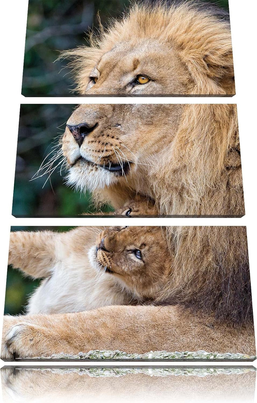 Pixxprint Lieber Löwe mit Jungtier als Leinwandbild/Grösse: 3 Teilig (120x80) cm/Wandbild/Kunstdruck