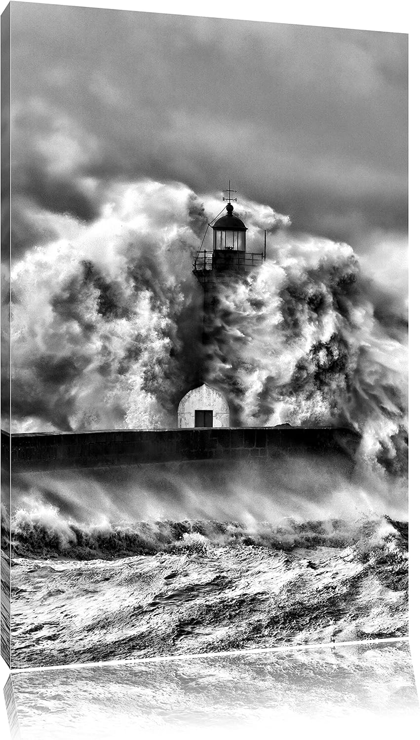 Pixxprint Leuchtturm im Sturm als Leinwandbild/Grösse: 100x70 cm/Wandbild/Kunstdruck/fertig bespannt