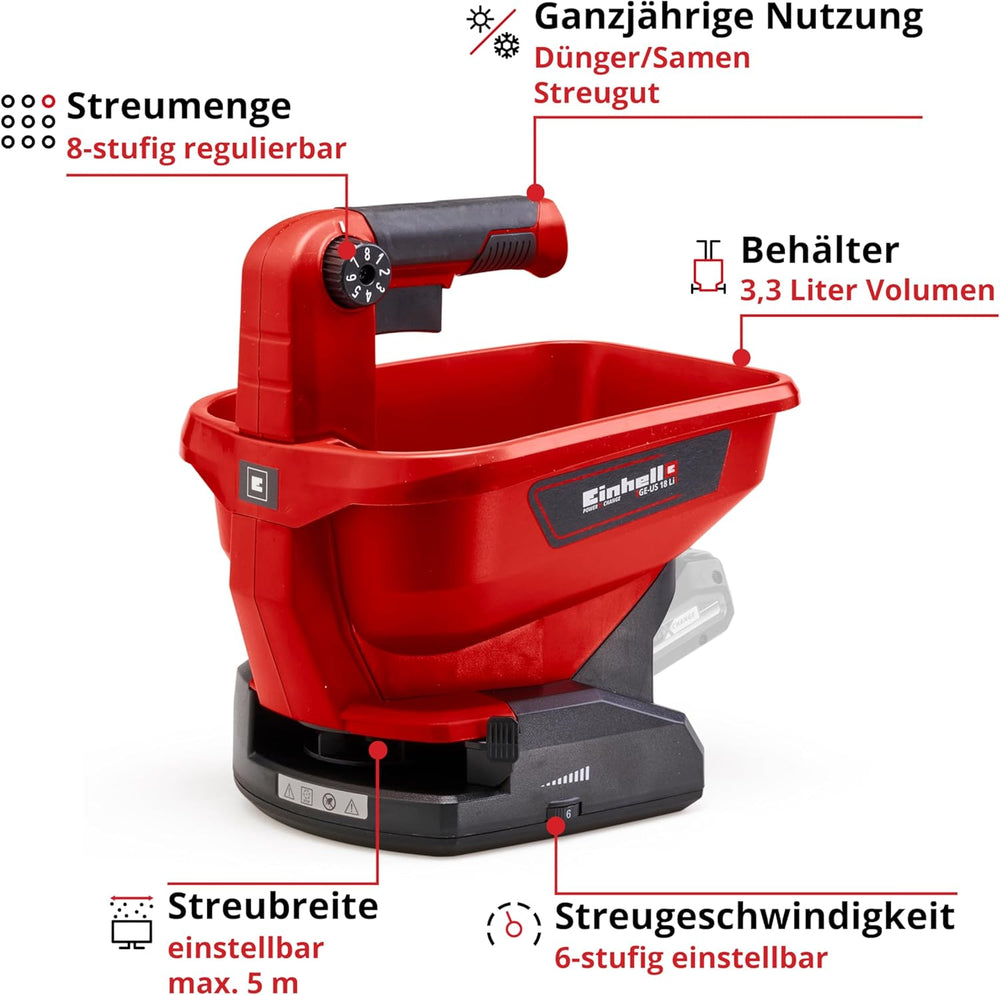 Einhell Universal Streuer GE-US 18 Li Power X-Change (Li-Ion, 18 V, 3,3 l Behälter, 6-stufige Drehza