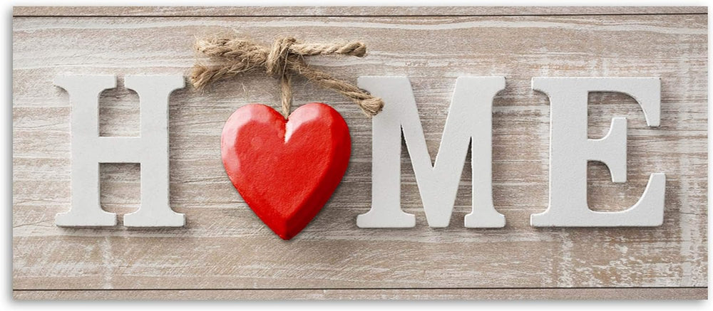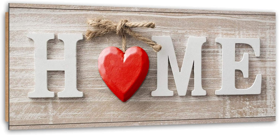 Feeby Dekobild Home 150x60 cm Deko Wand Kunstdruck Wohnzimmer Herz Vintage rustikal Rot Deko Paneel