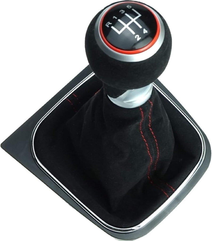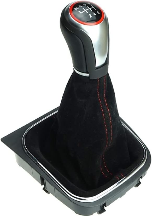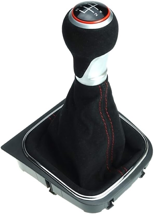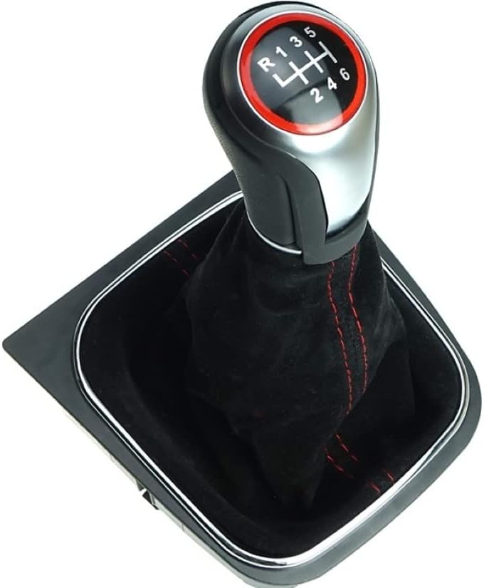 Schaltknauf Schaltmanschette Knauf 6 Gang rote Naht RR kompatibel/Ersatzteil für VW Golf 5 V Golf 6