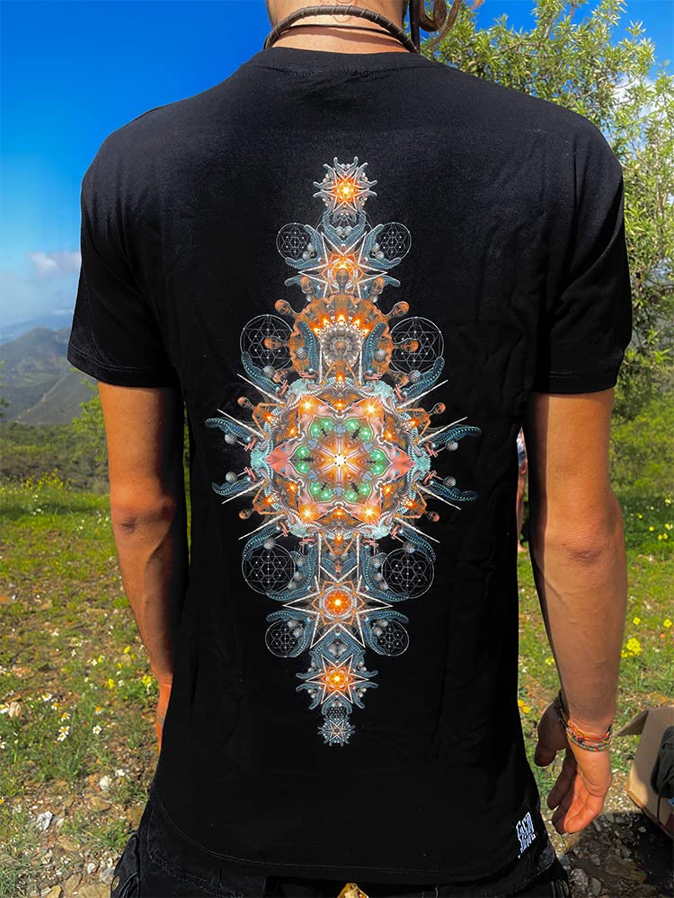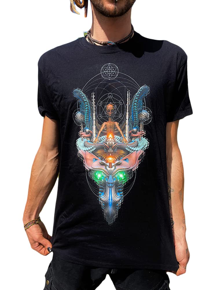 schwarzes Fraktal Alien T-Shirt Goa Psytrance (XL), XL