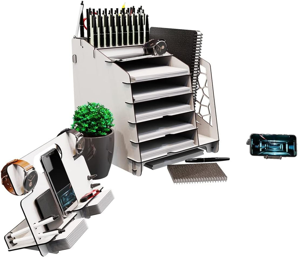 Schreibtisch Organizer gross, HxBxT 35,5x31x34,5cm, Tisch Organizer Holz, Organisation Schreibtisch,