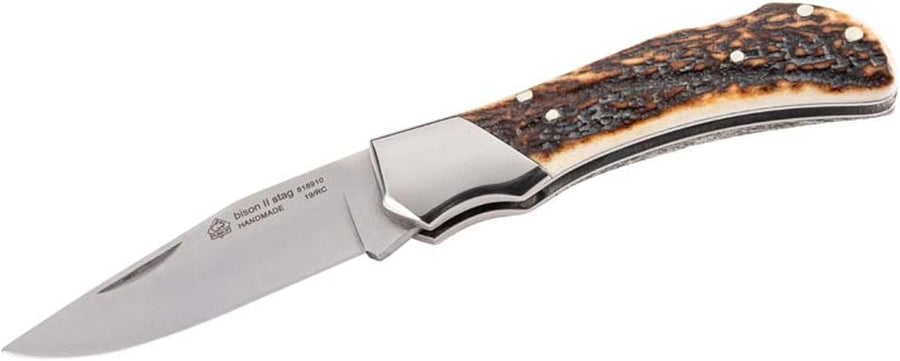 PUMA IP Taschenmesser bison II stag, Stahl AN.58, Nagelhau, Back Lock, Hirschhorngriffschalen, polie
