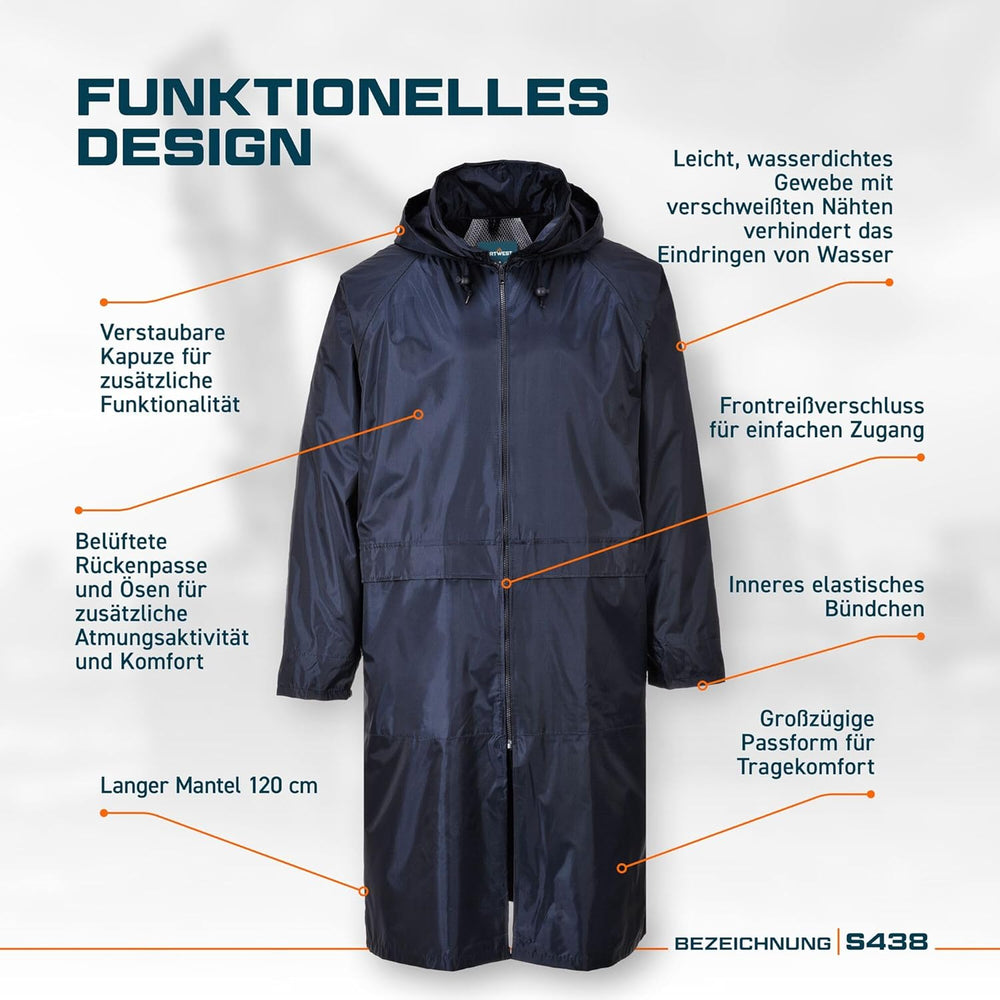 Portwest S440 Herren Leichte Wasserdichte Klassische Regenjacke Marineblau, 5XL 5XL Einfarbig, 5XL E