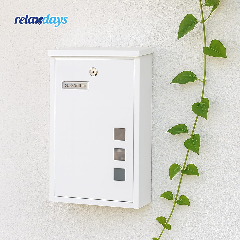 Relaxdays Briefkasten weiss modern Zweifarben Design, DIN-A4 Einwurf, Stahl, gross, HxBxT: 33 x 35 x