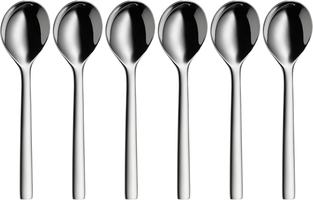 WMF Nuova Suppenlöffel Set 6-teilig, 17 cm, Müslilöffel, Kinderlöffel, Esslöffel, Cromargan Edelstah