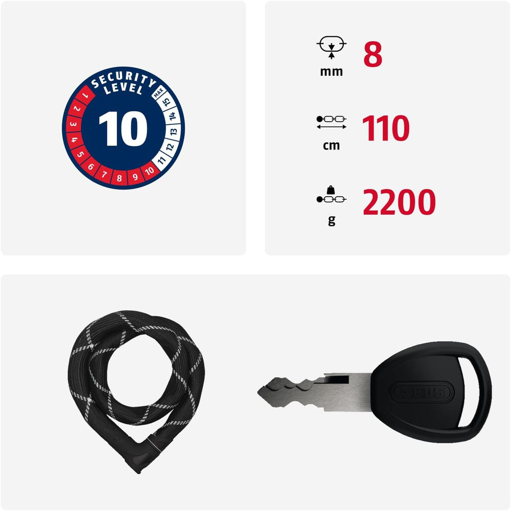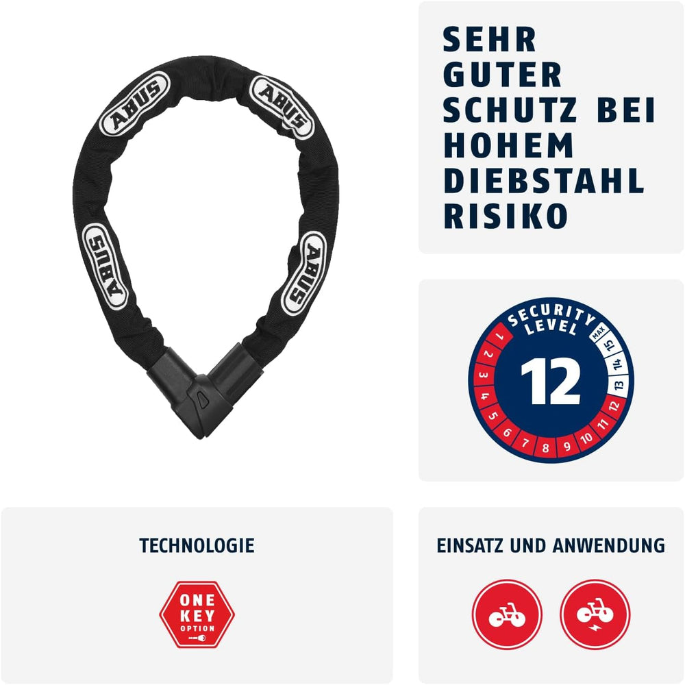 ABUS Kettenschloss Iven Chain 8210 – Fahrradschloss aus gehärtetem Stahl – mit Kunstfaserummantelung