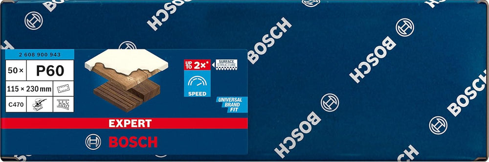 Bosch Accessories 50x Schleifpapier Expert C470 mit 14 Löchern (für Hartholz, Farbe auf Holz, 115x23