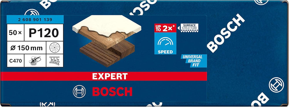 Bosch Accessories 50x Schleifpapier Expert C470 Mehrloch (für Hartholz, Farbe auf Holz, Ø 150 mm, Kö