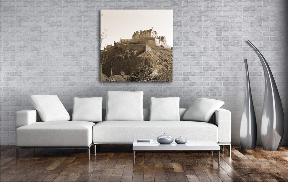 deyoli Burg in Edinburgh Schottland Format: 70x70 Effekt: Sepia als Leinwandbild, Motiv auf Echtholz