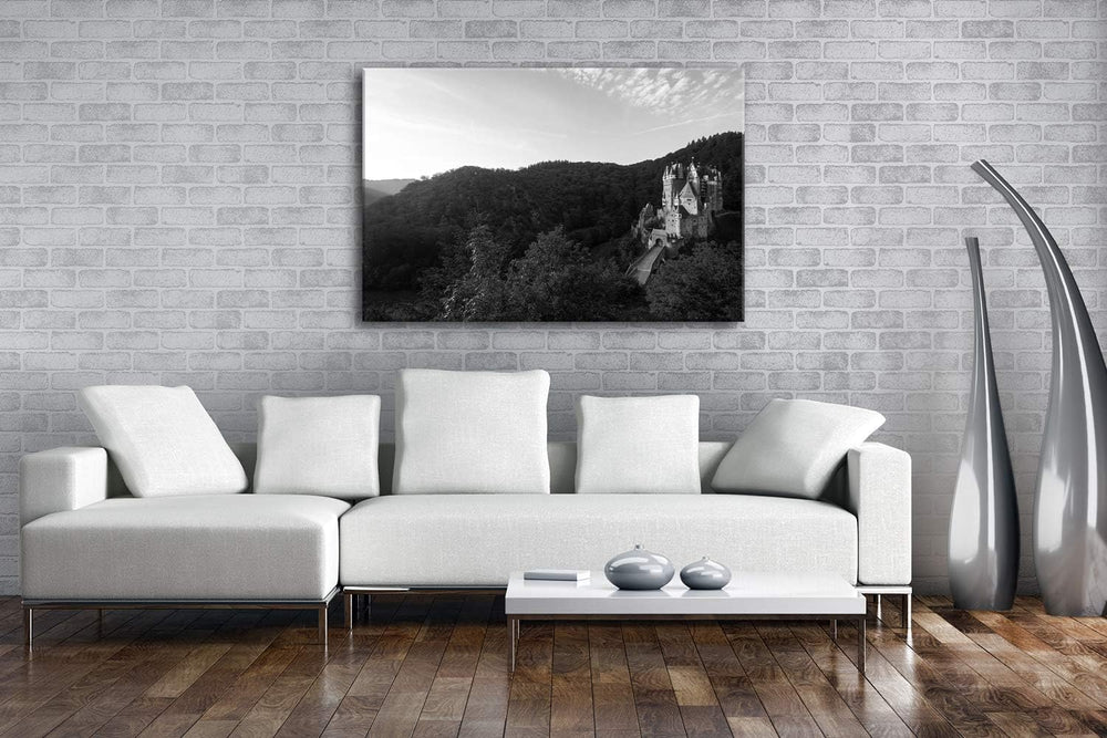 deyoli Burg Eltz in der Herbstzeit Format: 80x60 Effekt: Schwarz&Weiss als Leinwand, Motiv fertig ge