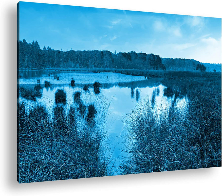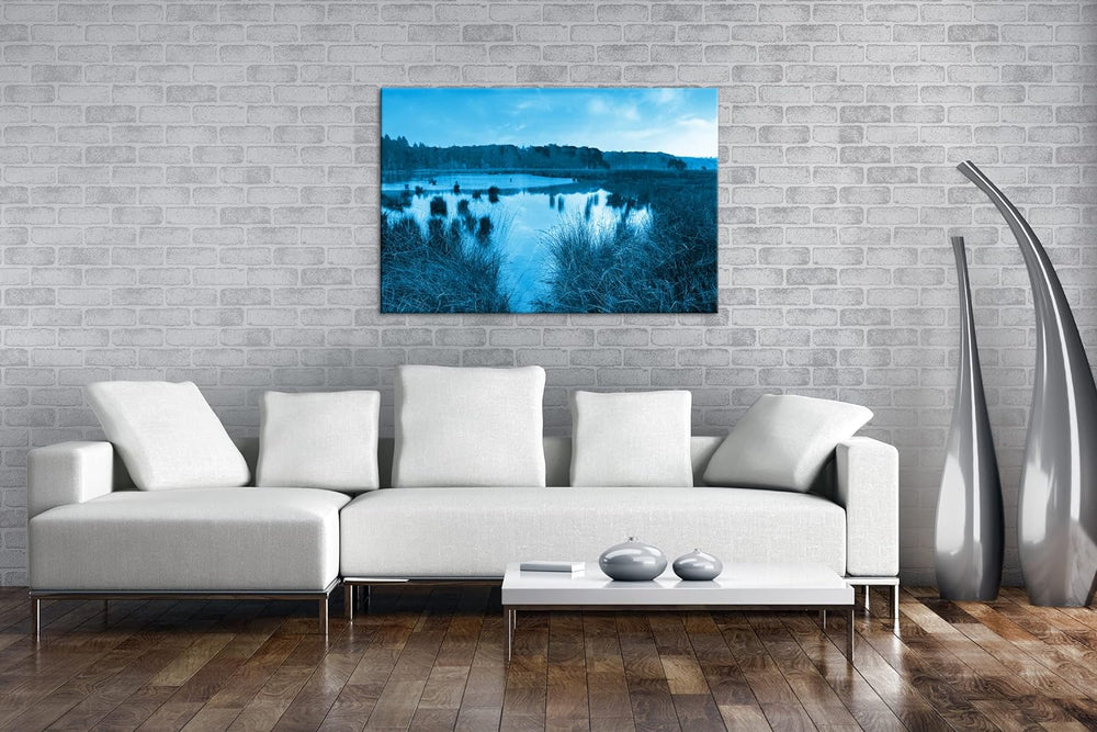 deyoli Bunter Sonnenuntergang Format 80x60 Effekt: Monocrome Blau als Leinwandbild, Motiv fertig ger