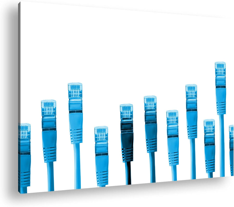 deyoli bunte Netzwerkkabel Format 80x60 Effekt: Monocrome Blau als Leinwandbild, Motiv fertig gerahm