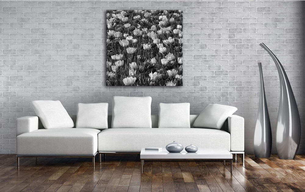 deyoli buntes Blumenfeld Format: 60x60 Effekt: Schwarz&Weiss als Leinwandbild, Motiv fertig gerahmt
