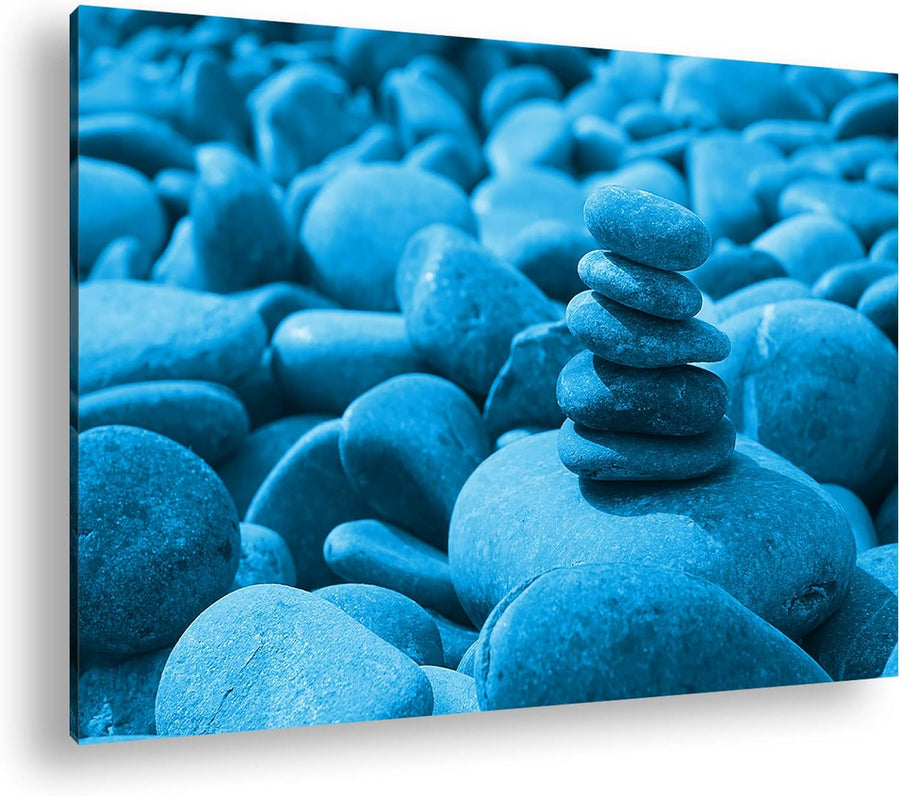 deyoli bunte Meditations Steine Format 80x60 Effekt: Monocrome Blau als Leinwandbild, Motiv fertig g