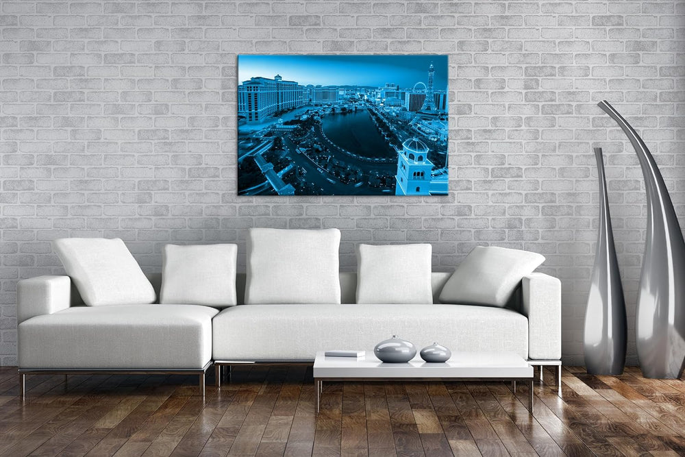deyoli Caesars Palace in Las Vegas Format 80x60 Effekt: Monocrome Blau als Leinwandbild, Motiv ferti