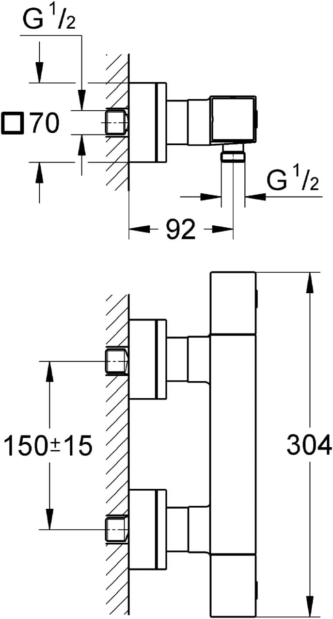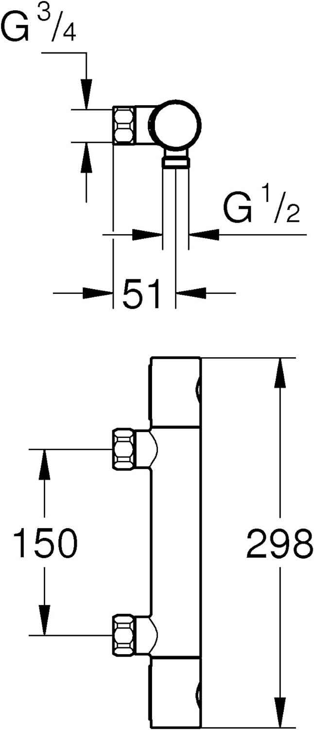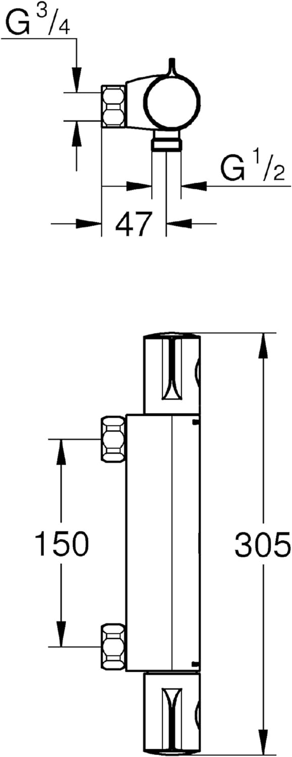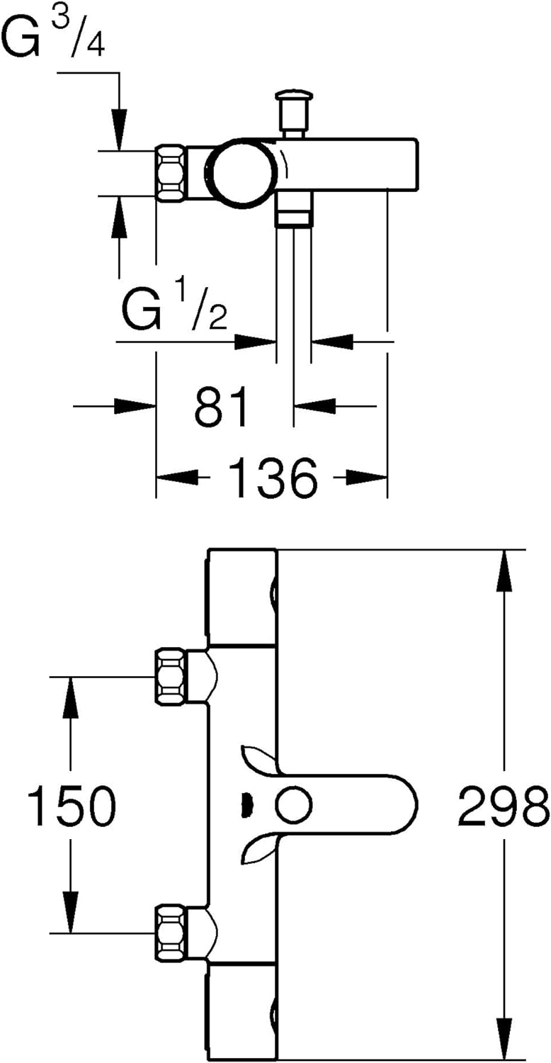 GROHE Grohtherm 2000 - Thermostat- Wannenbatterie (wassersparend, für die Wandmontage, mit Duschabla