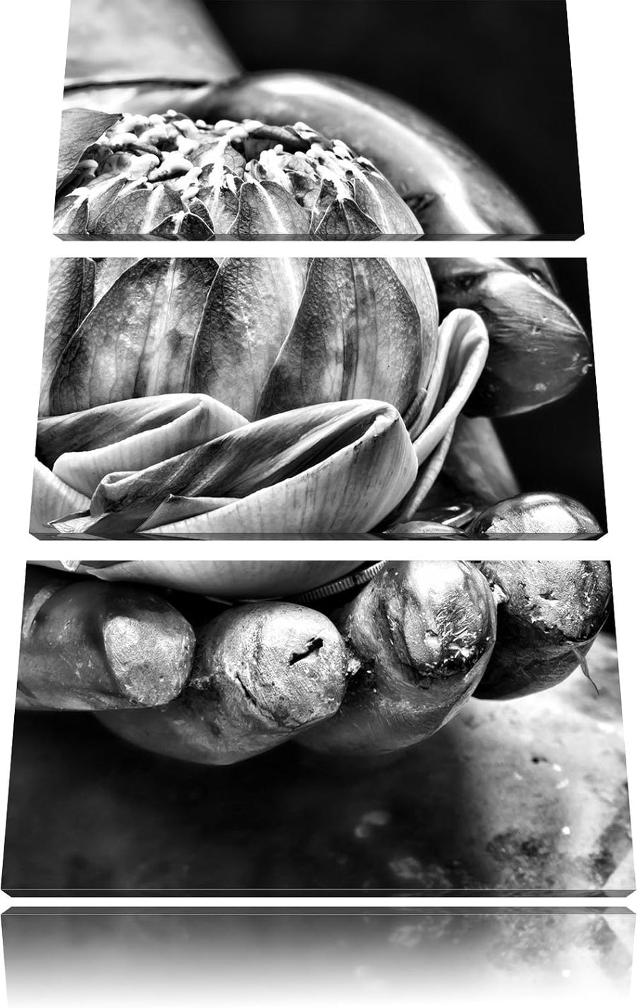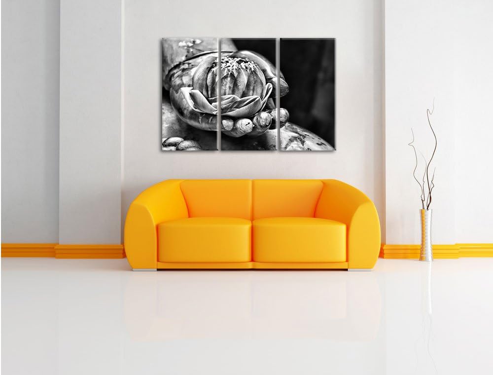 Pixxprint Lotus auf der Hand eines Buddhas als Leinwandbild/Grösse: 3 Teilig (120x80) cm/Wandbild/Ku