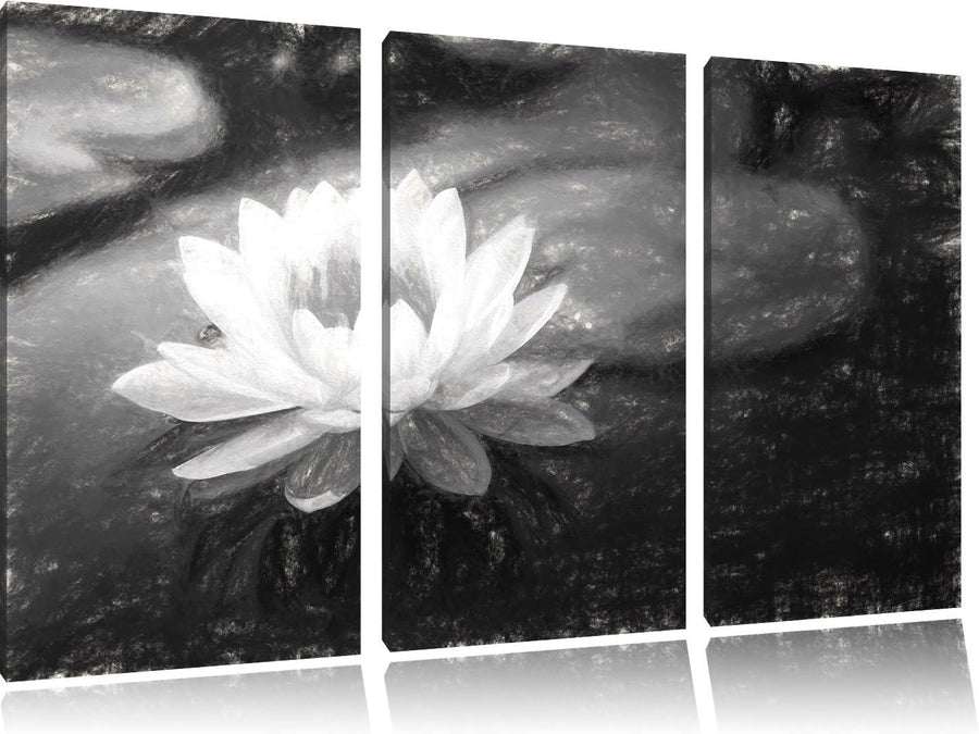 Pixxprint Lotusblume in Teich als Leinwandbild/Grösse: 3 Teilig (120x80 cm) cm/Wandbild/Kunstdruck/f