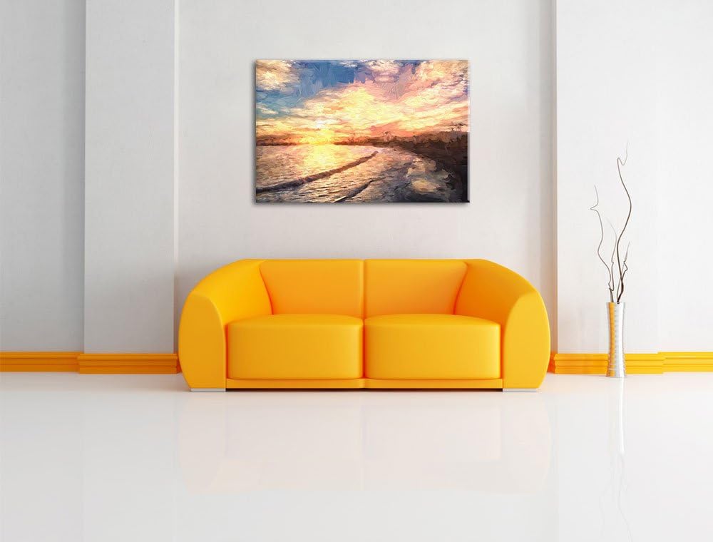 Pixxprint Lotus im Abendlicht / 100x70cm Leinwandbild bespannt auf Holzrahmen/Wandbild Kunstdruck De
