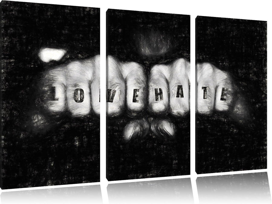 Pixxprint Love Hate Fäuste als Leinwandbild 3 teilig/Grösse: 3 Teilig (120x80) / Wandbild/Kunstdruck