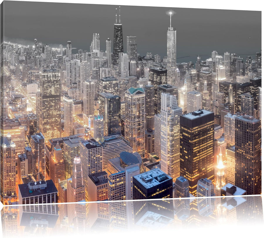 Pixxprint Luftaufnahme von Chicago bei Nacht Kunst Pinsel Effekt, Format: 100x70 auf Leinwand, XXL r