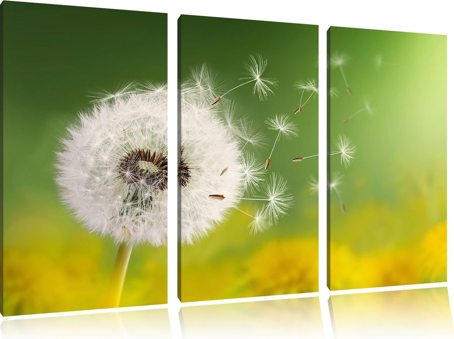Pixxprint Löwenzahn Samen als Leinwandbild/Grösse: 3 Teilig (120x80) / Wandbild/Kunstdruck/fertig be