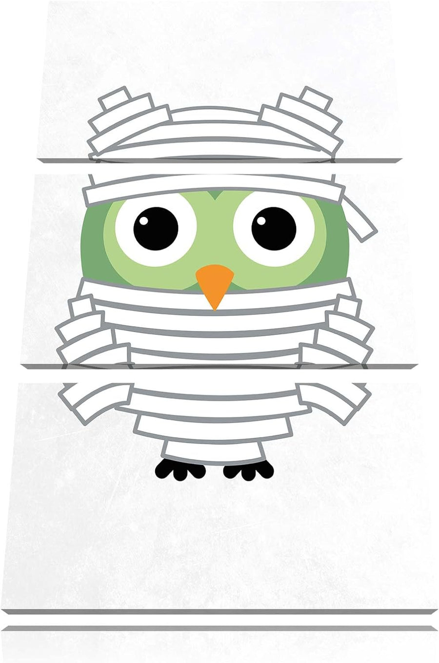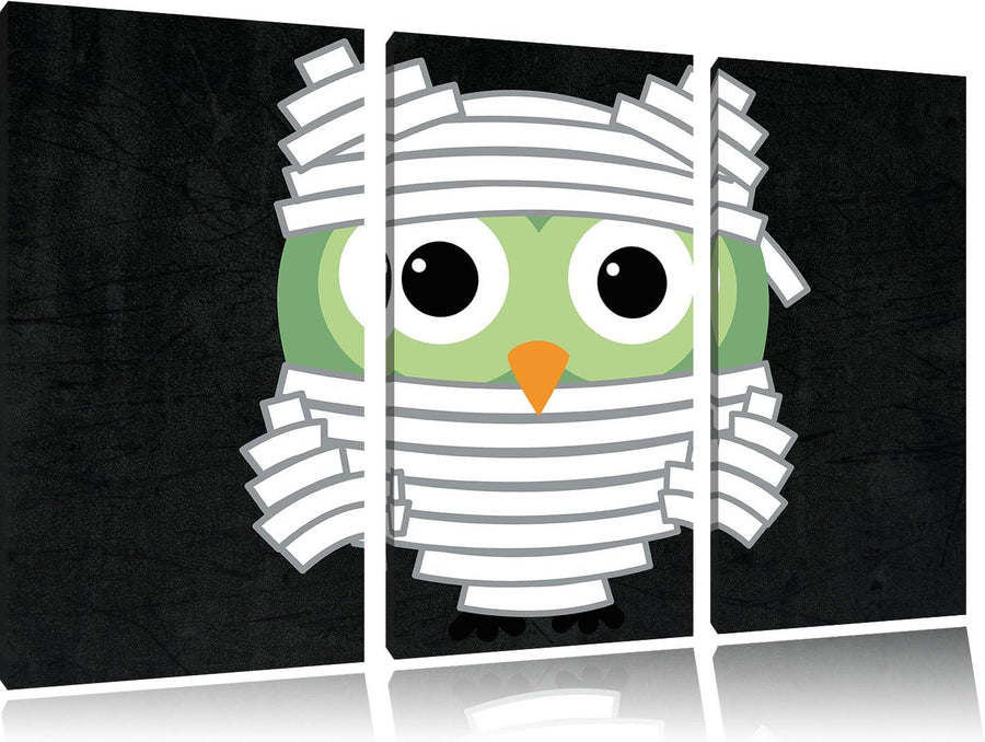 Pixxprint Lustige Mumien Eule als Leinwandbild/Grösse: 3 Teilig (120x80) cm/Wandbild/Kunstdruck/fert