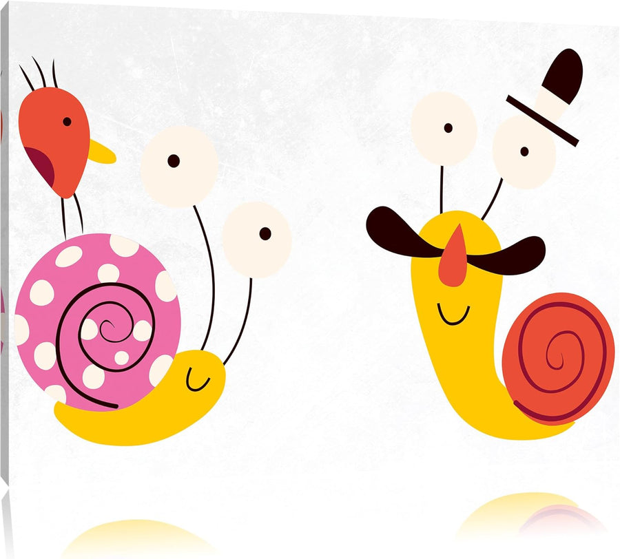 Pixxprint lustige Schnecken mit Vogel als Leinwandbild/Grösse: 100x70 cm/Wandbild/Kunstdruck/fertig