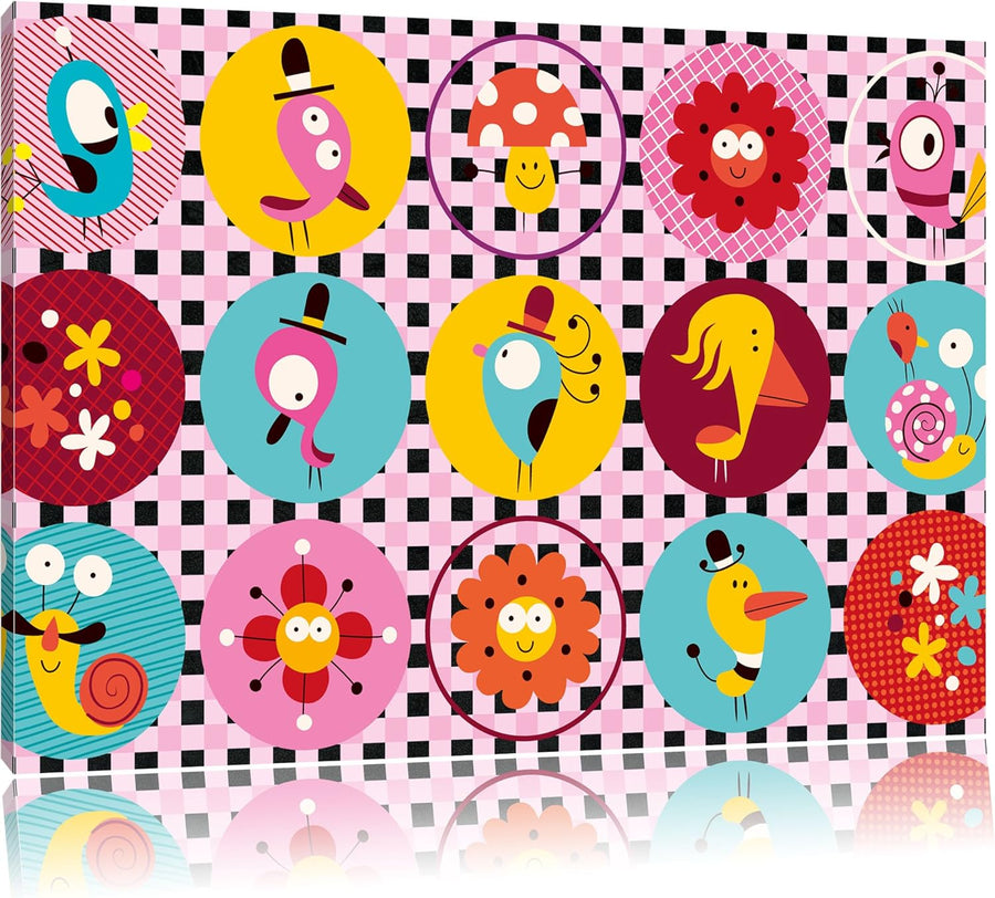 Pixxprint Lustige Tiere und Pflanzen als Leinwandbild/Grösse: 100x70 cm/Wandbild/Kunstdruck/fertig b