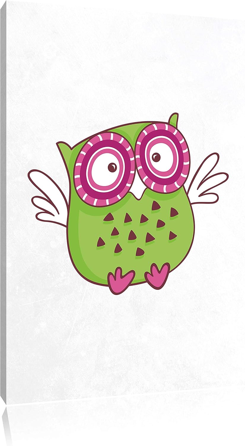 Pixxprint Lustige grüne Eule fliegend weiss, Format: 70x100 auf hochkantiges Leinwandbild, XXL riesi