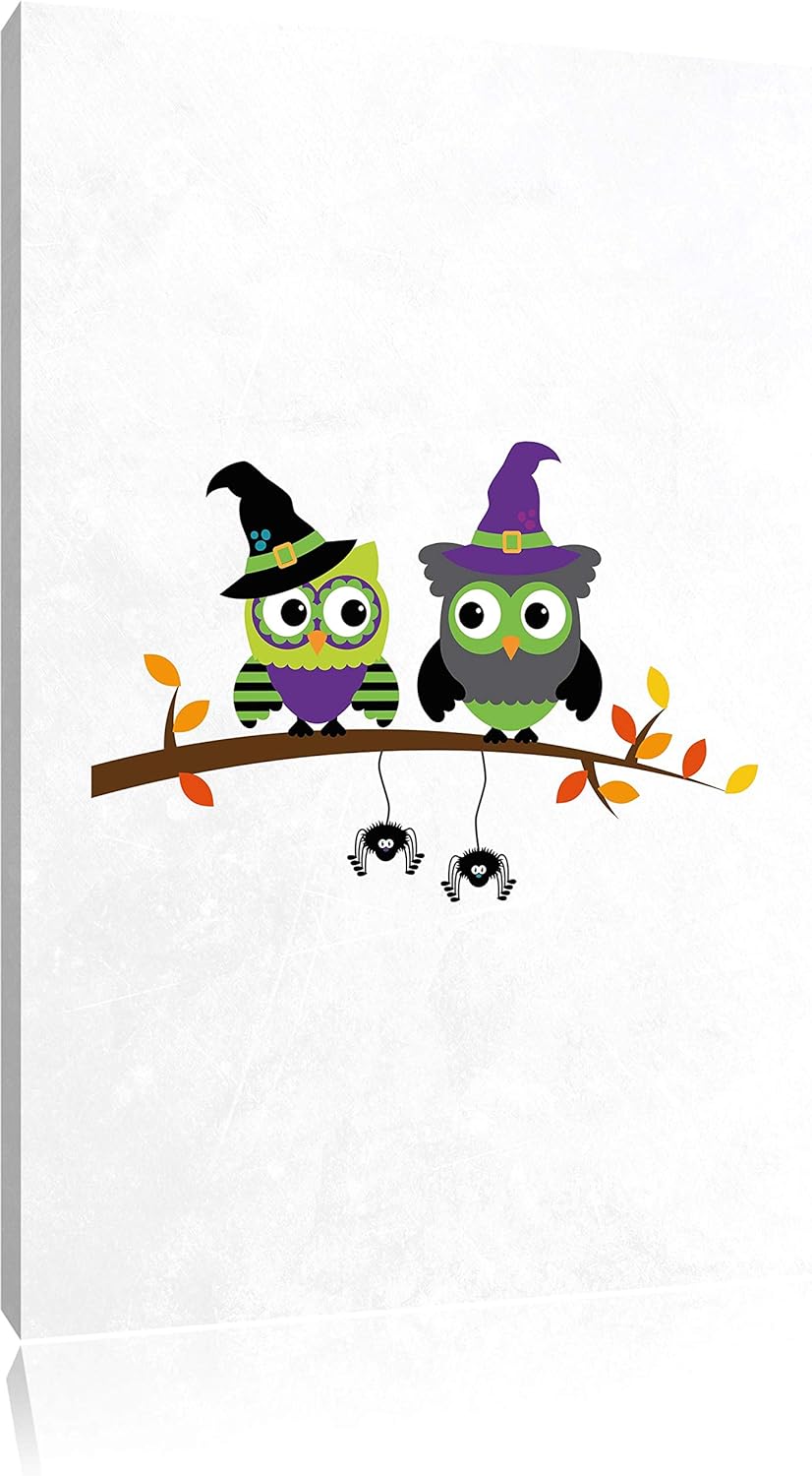 Pixxprint Lustige Hexen Eulen auf AST weiss, Format: 70x100 auf hochkantiges Leinwandbild, XXL riesi