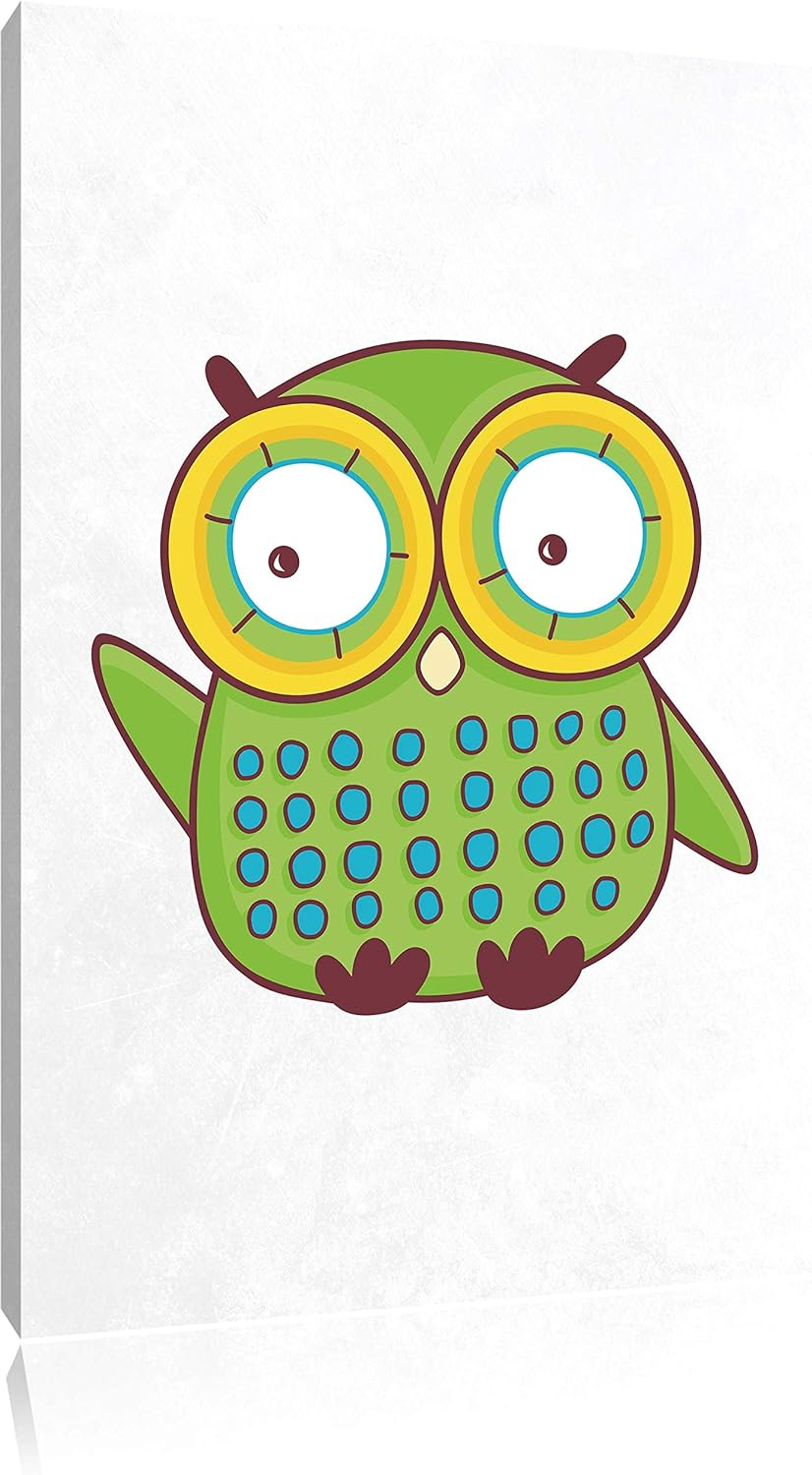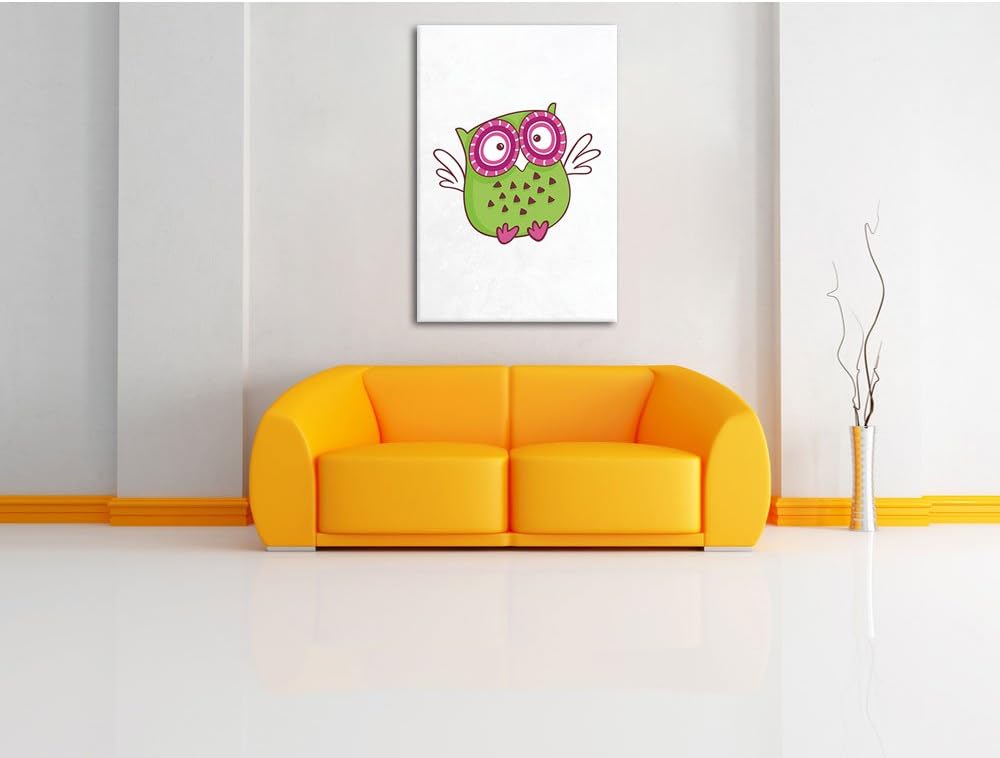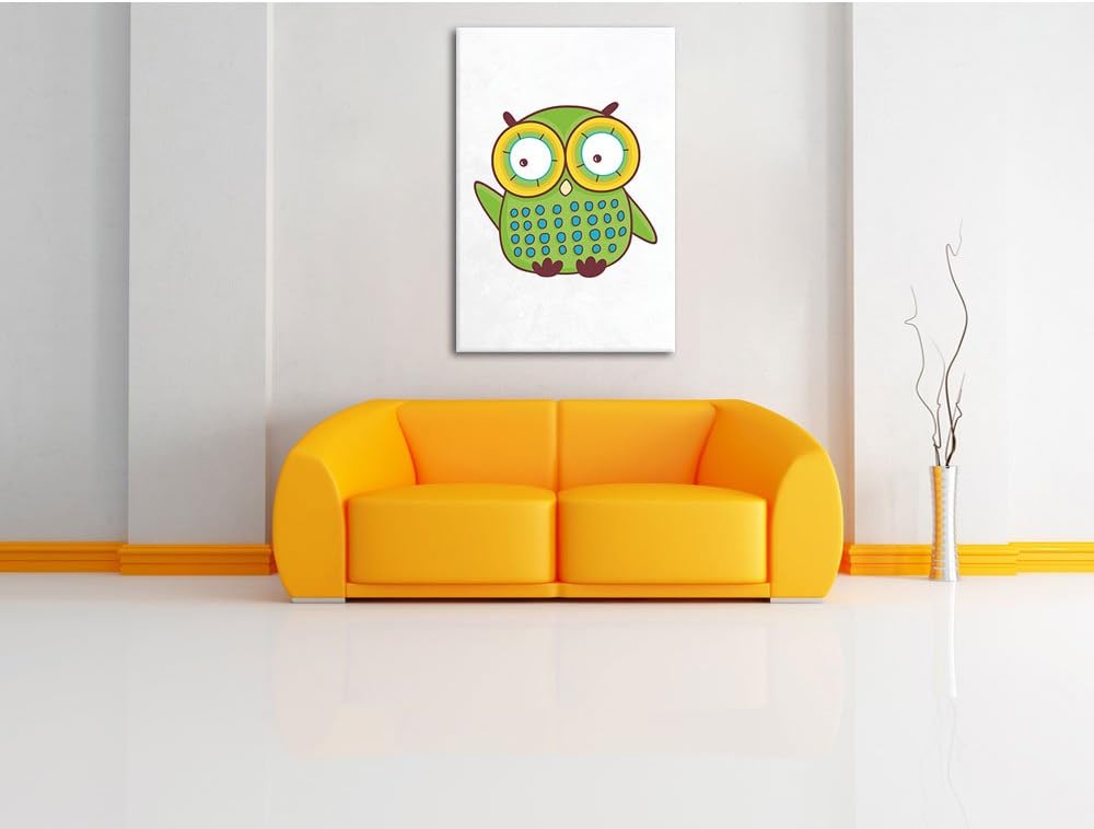 Pixxprint Lustige grüne Eule sitzend weiss, Format: 70x100 auf hochkantiges Leinwandbild, XXL riesig