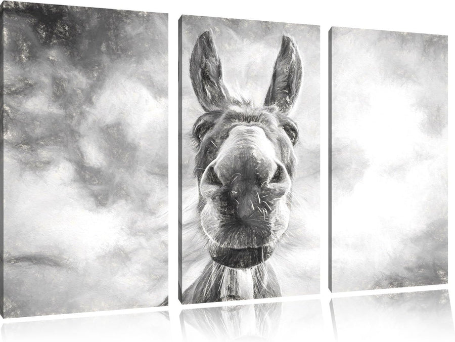 Pixxprint Lustiger Esel als Leinwandbild | Grösse: 3 Teilig (120x80) | Wandbild| Kunstdruck | fertig