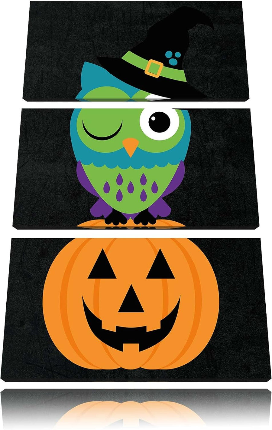 Pixxprint Lustige Hexen Eule als Leinwandbild/Grösse: 3 Teilig (120x80) cm/Wandbild/Kunstdruck/ferti
