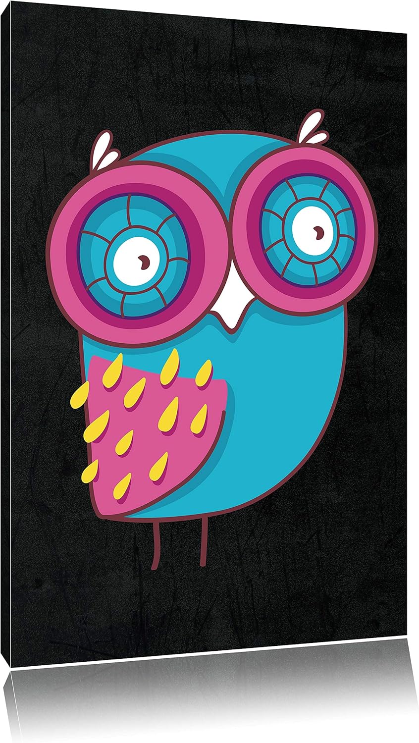 Pixxprint Lustige Blaue Eule stehend schwarz, Format: 70x100 auf hochkantiges Leinwandbild, XXL ries