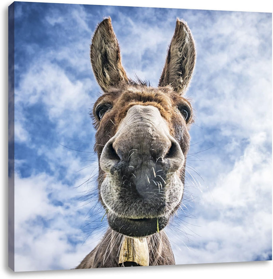 Pixxprint Lustiger Esel, Format: 70x70 auf Leinwand, XXL riesige Bilder fertig gerahmt mit Keilrahme