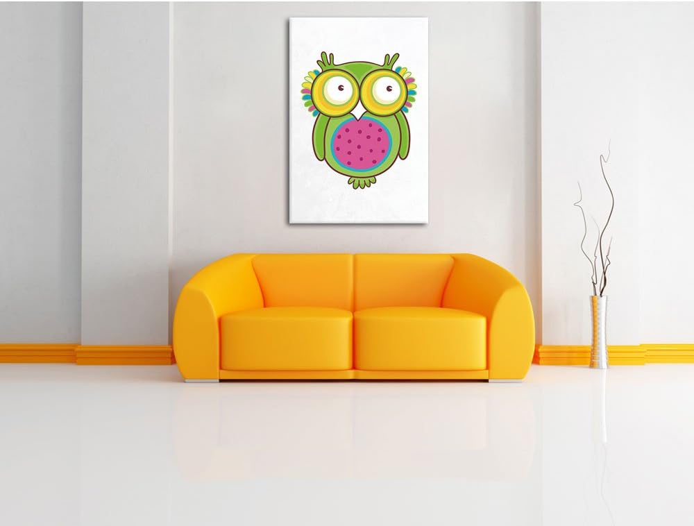Pixxprint Lustige kleine Eule als Leinwandbild/Grösse: 100x70 / Wandbild/Kunstdruck/fertig bespannt,