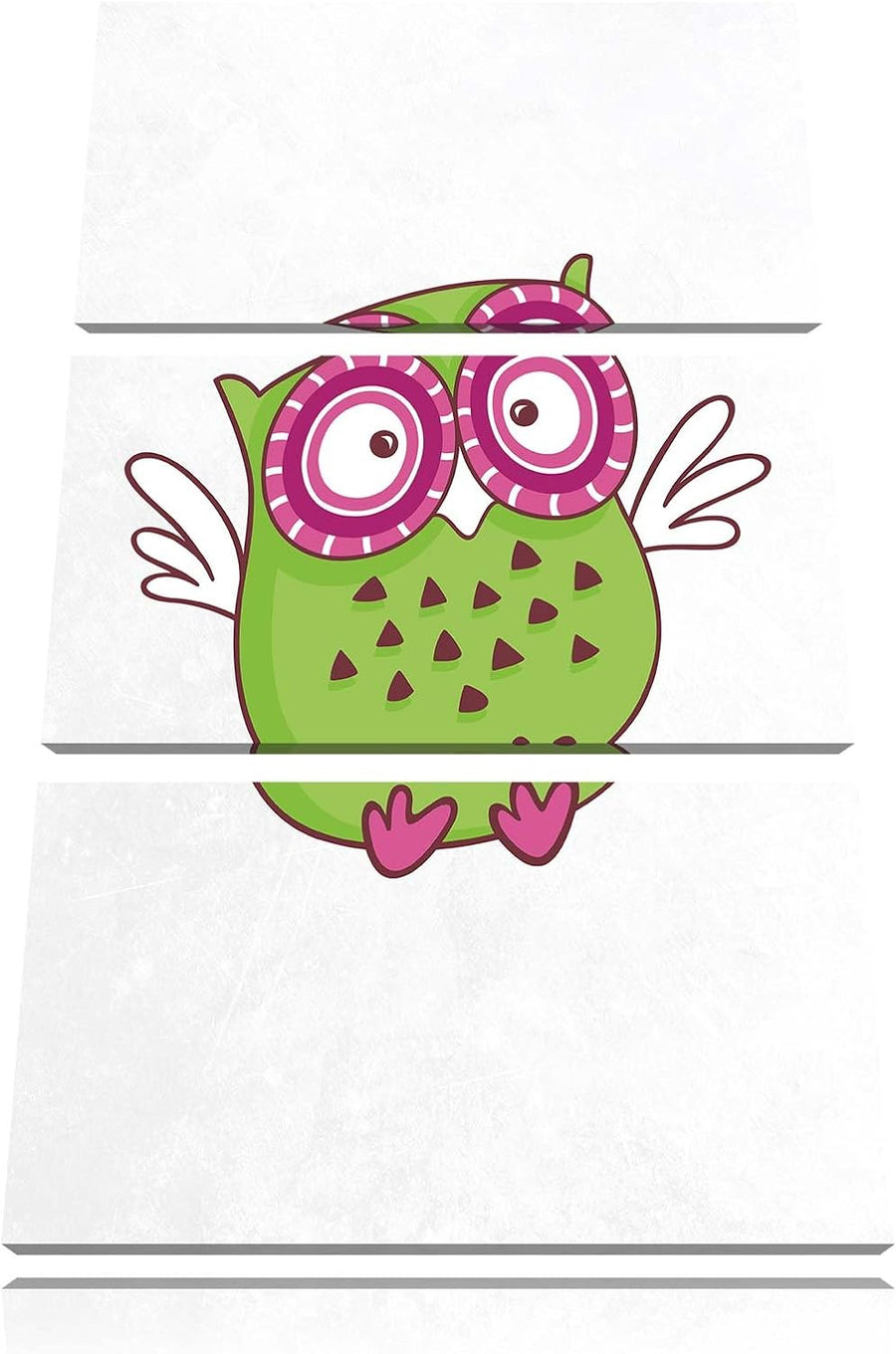 Pixxprint Lustige grüne Eule fliegend als Leinwandbild/Grösse: 3 Teilig (120x80) cm/Wandbild/Kunstdr