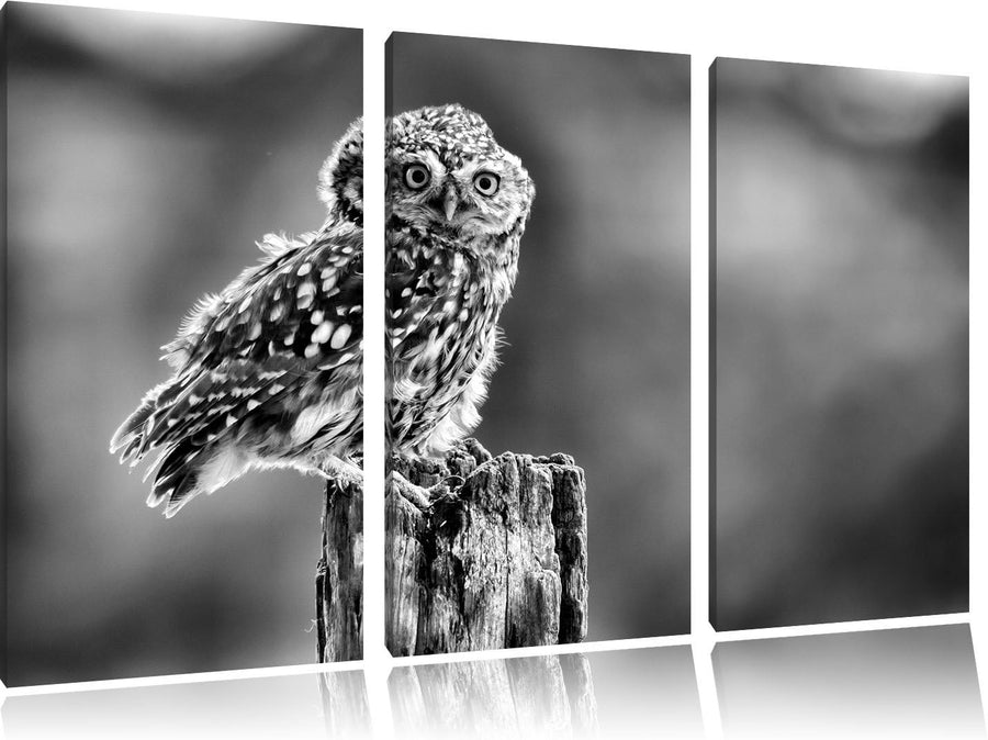 Pixxprint Lustige kleine Eule 3-Teiler Leinwandbild 120x80 Bild auf Leinwand