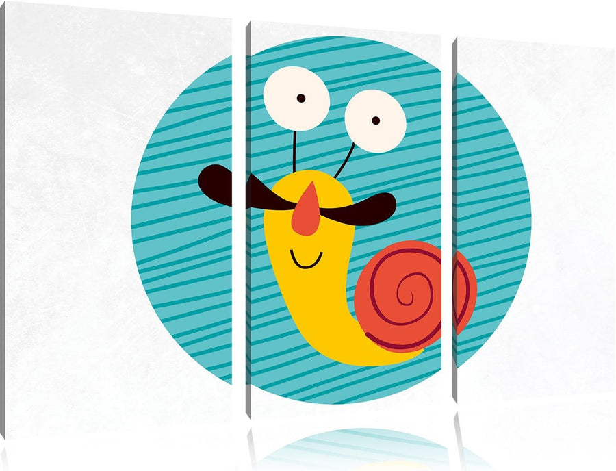 Pixxprint Lustige Schnecke als Leinwandbild/Grösse: 3 Teilig (120x80) cm/Wandbild/Kunstdruck/fertig
